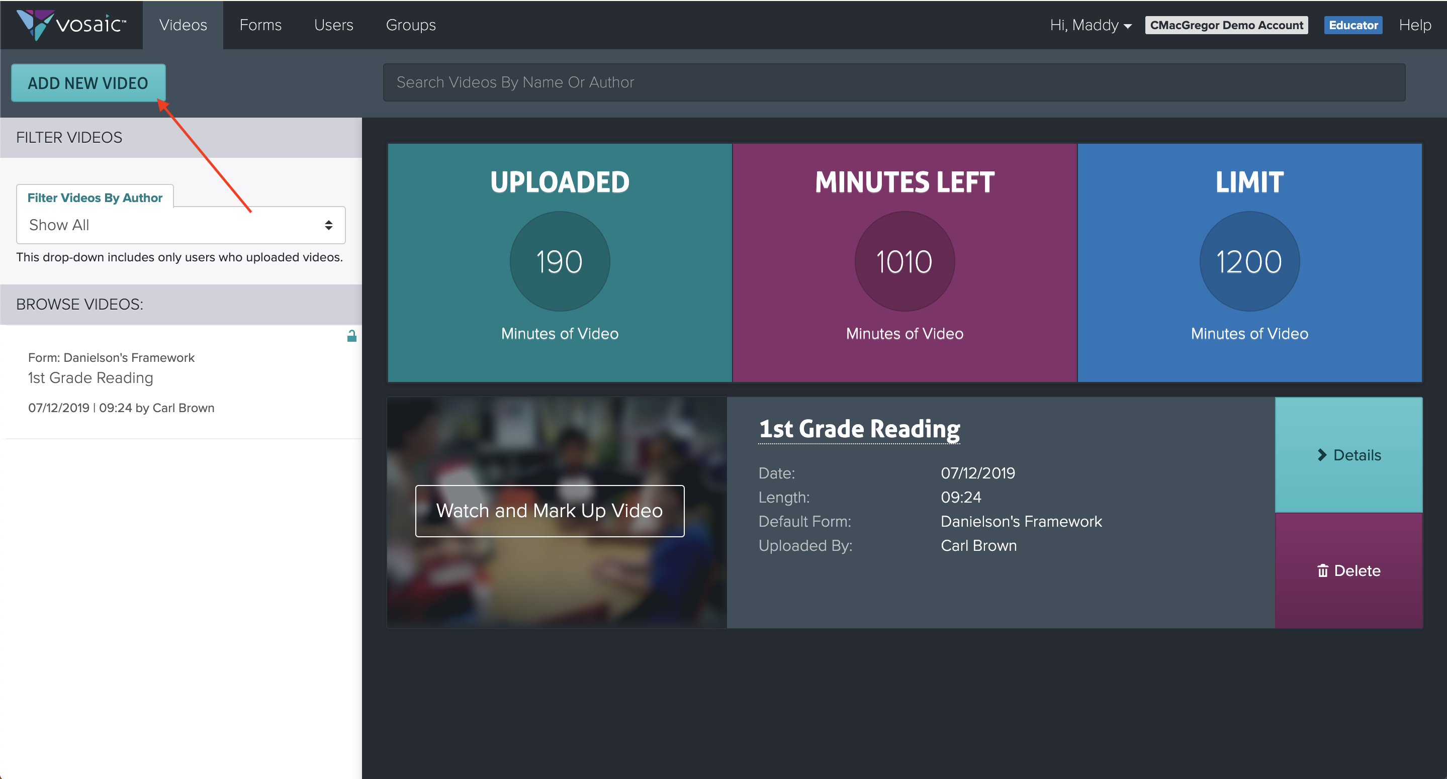 1. Click ADD NEW VIDEO located near the top left of the Videos tab page.