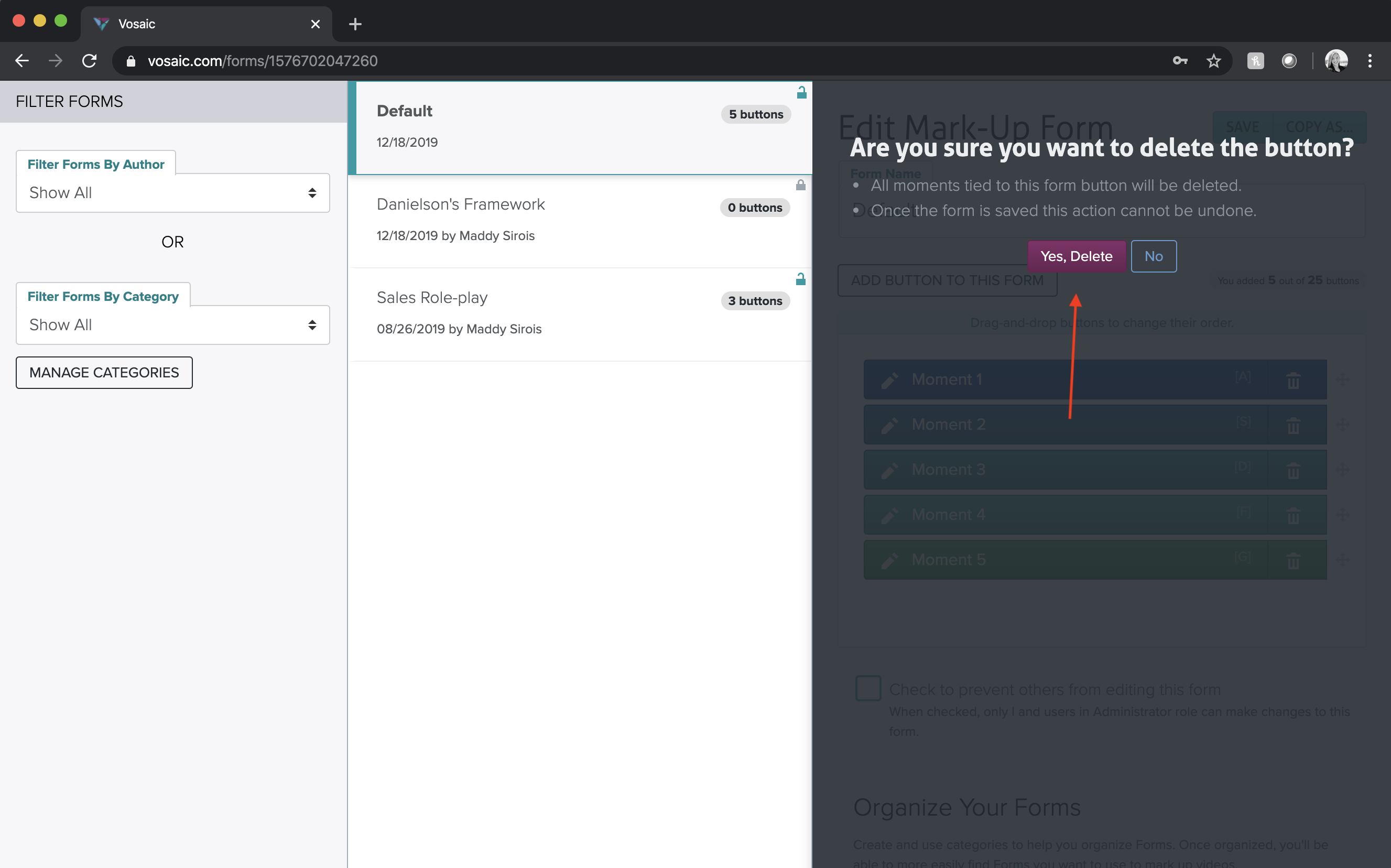 Note: Repeat steps 3 and 4 to delete additional buttons.